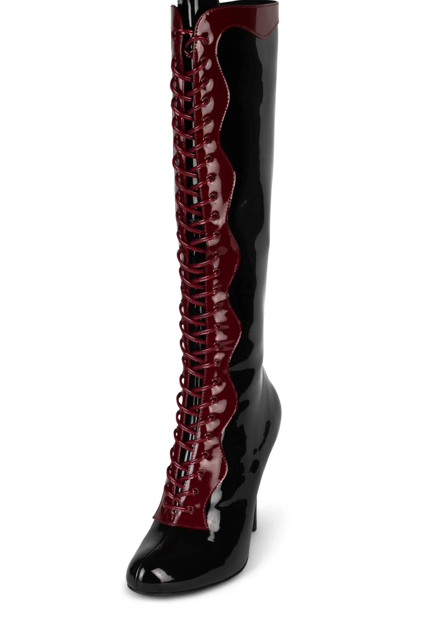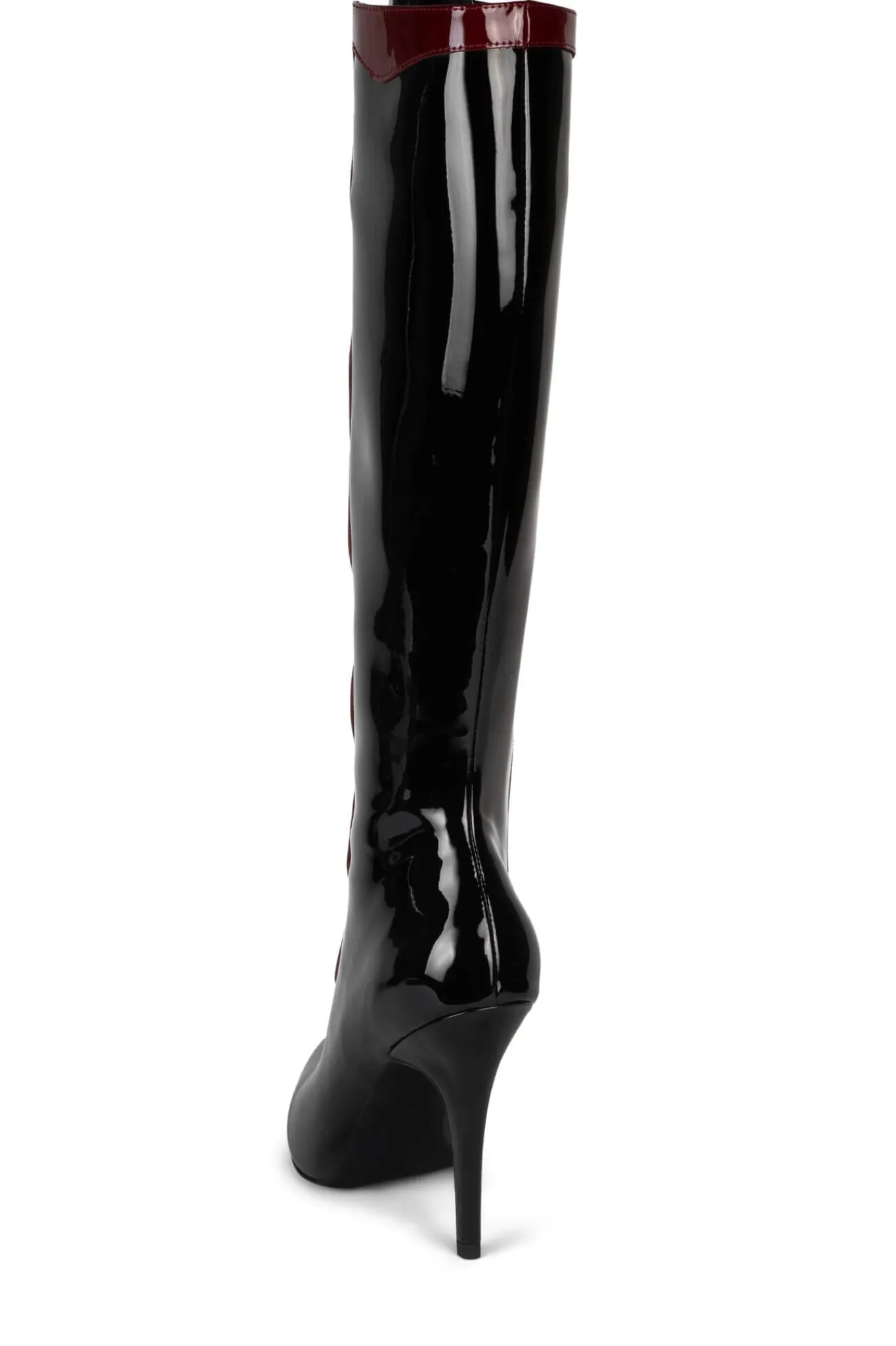 Knee-high Victorian-inspired stiletto riding boot Fits true to sizeMeasurements taken from size 7 4.24″ Heel, 0.25″ Pl…