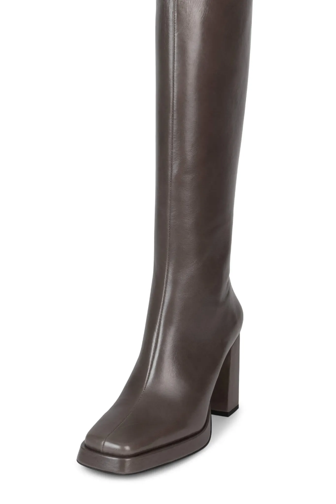 Square-toe platform knee-high boot.