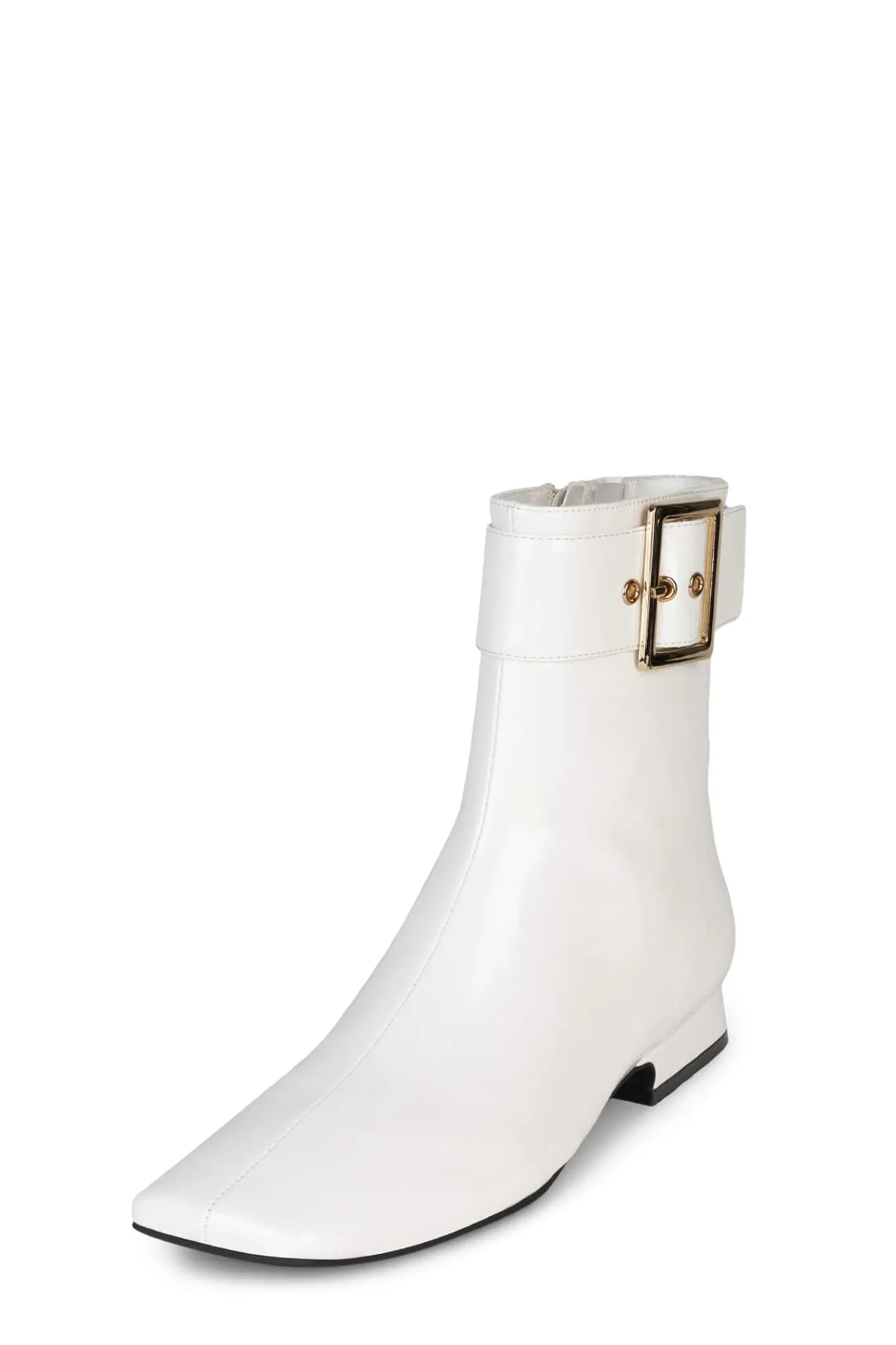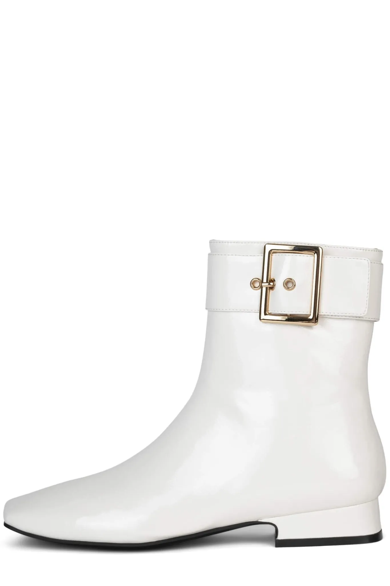 Mod-inspired ankle boot with buckle ankle strap Fits true to sizeMeasurements taken from a size 7 1″ Heel, 0.25″ Platf…