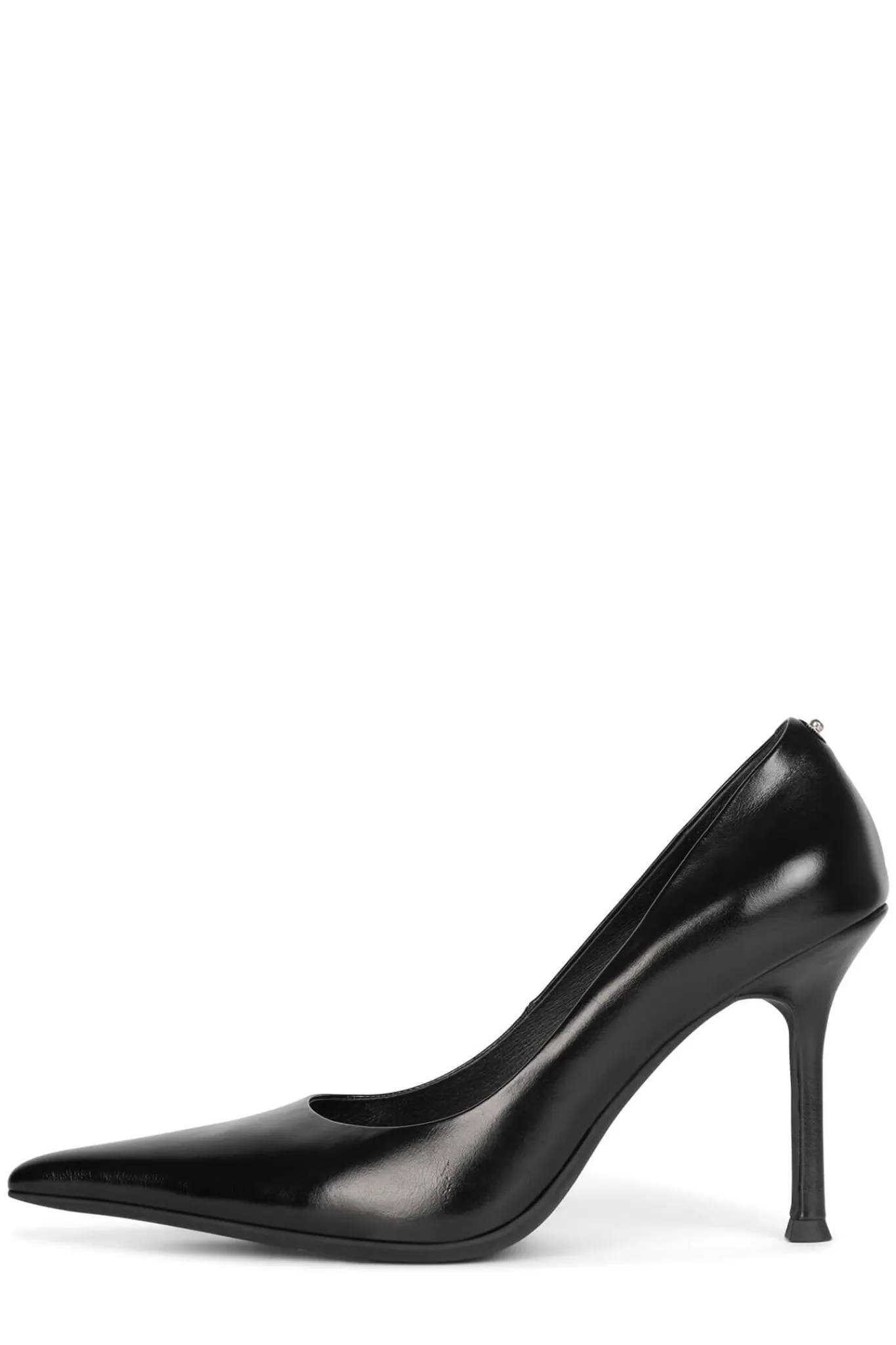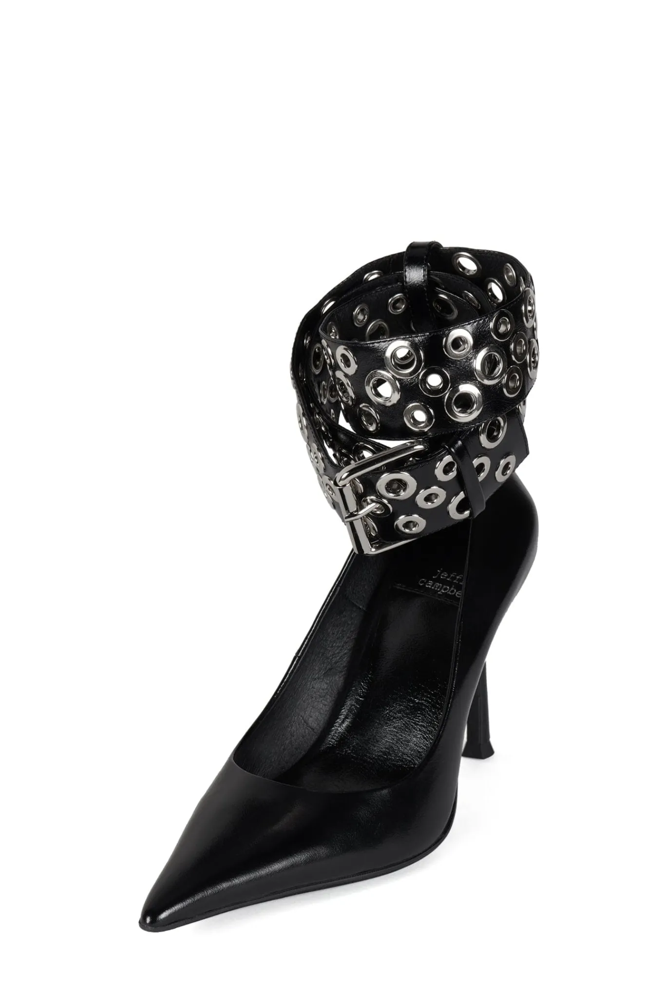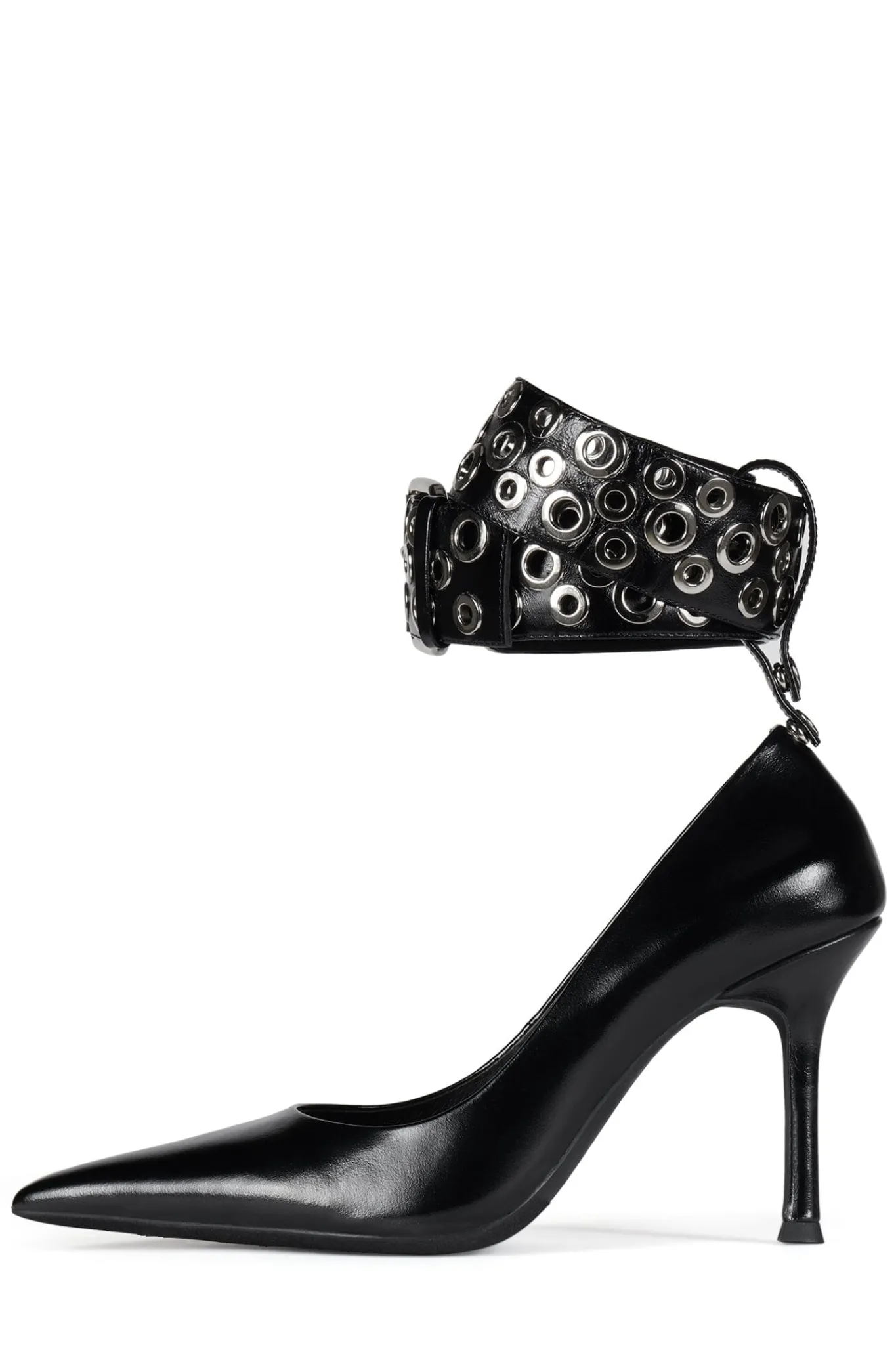 Pointed-toe pumps with mismatched detachable ankle cuffs