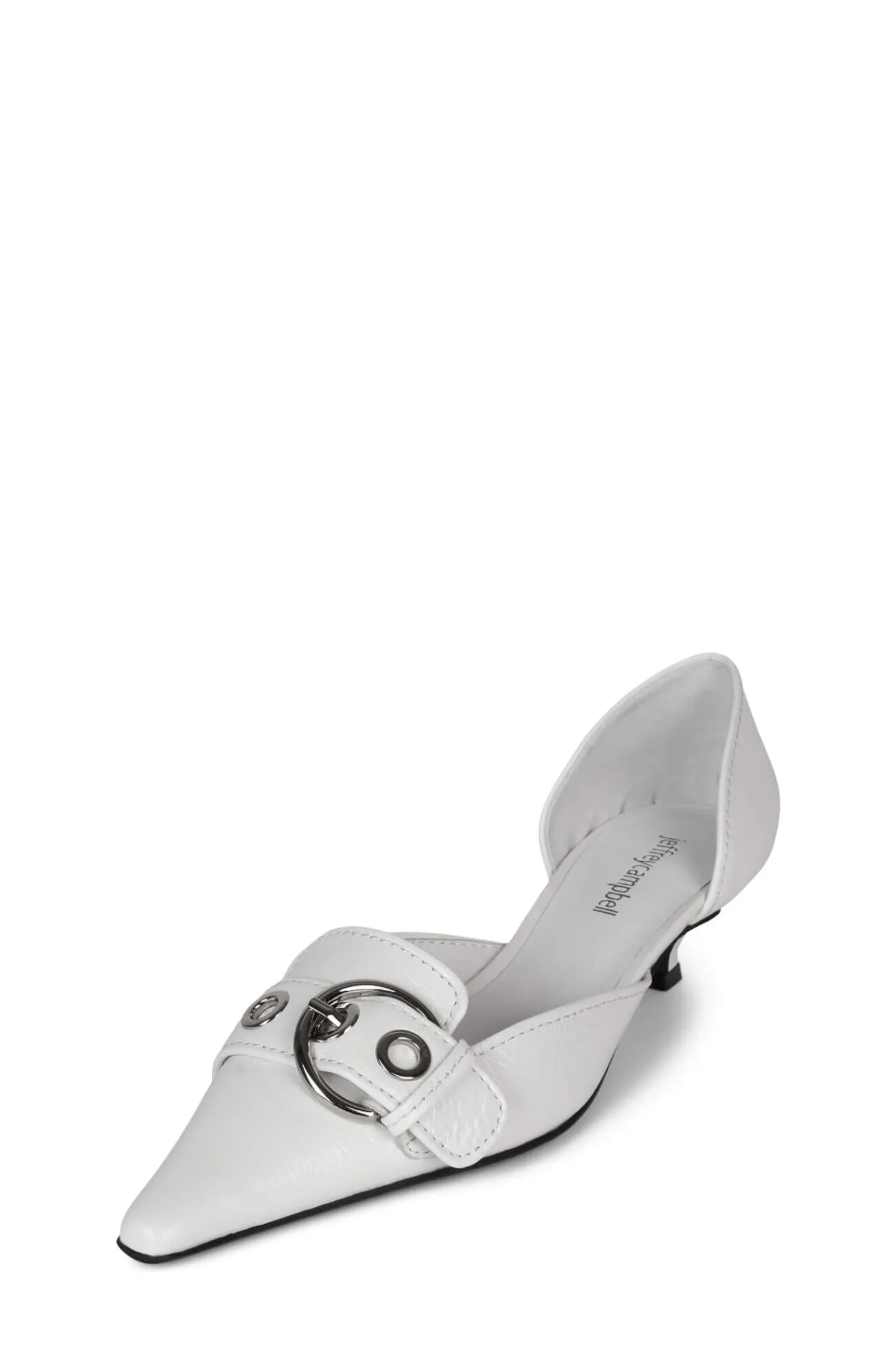 Kitten heel loafer with buckle detailFits true to size Measurements taken from a size 7 1.25″ Heel, 0.25″ PlatformLeat…