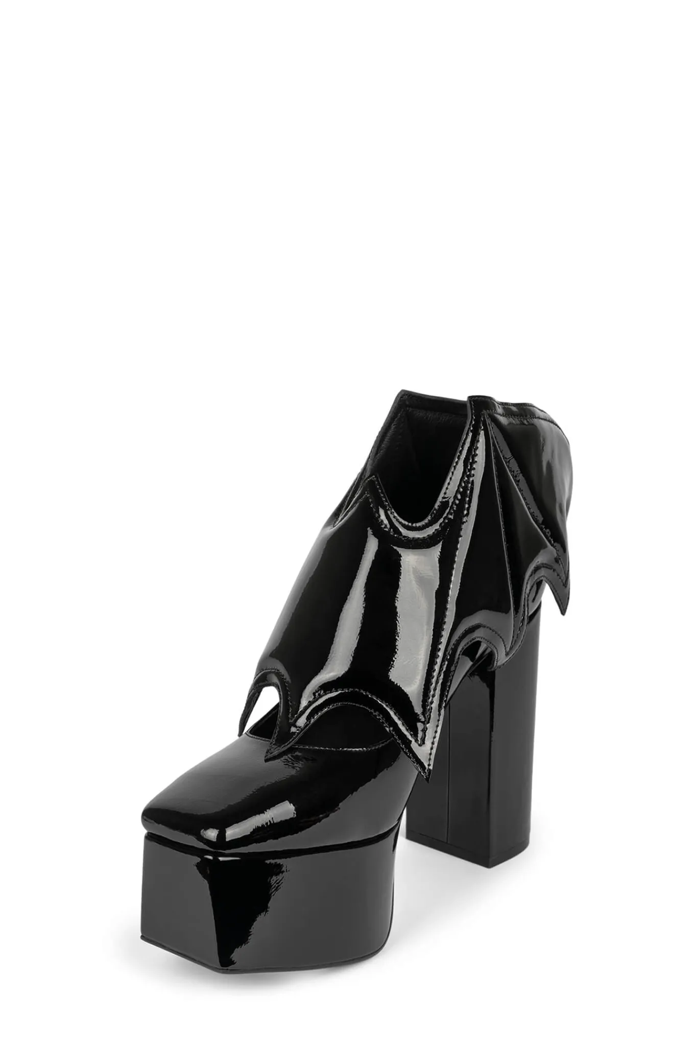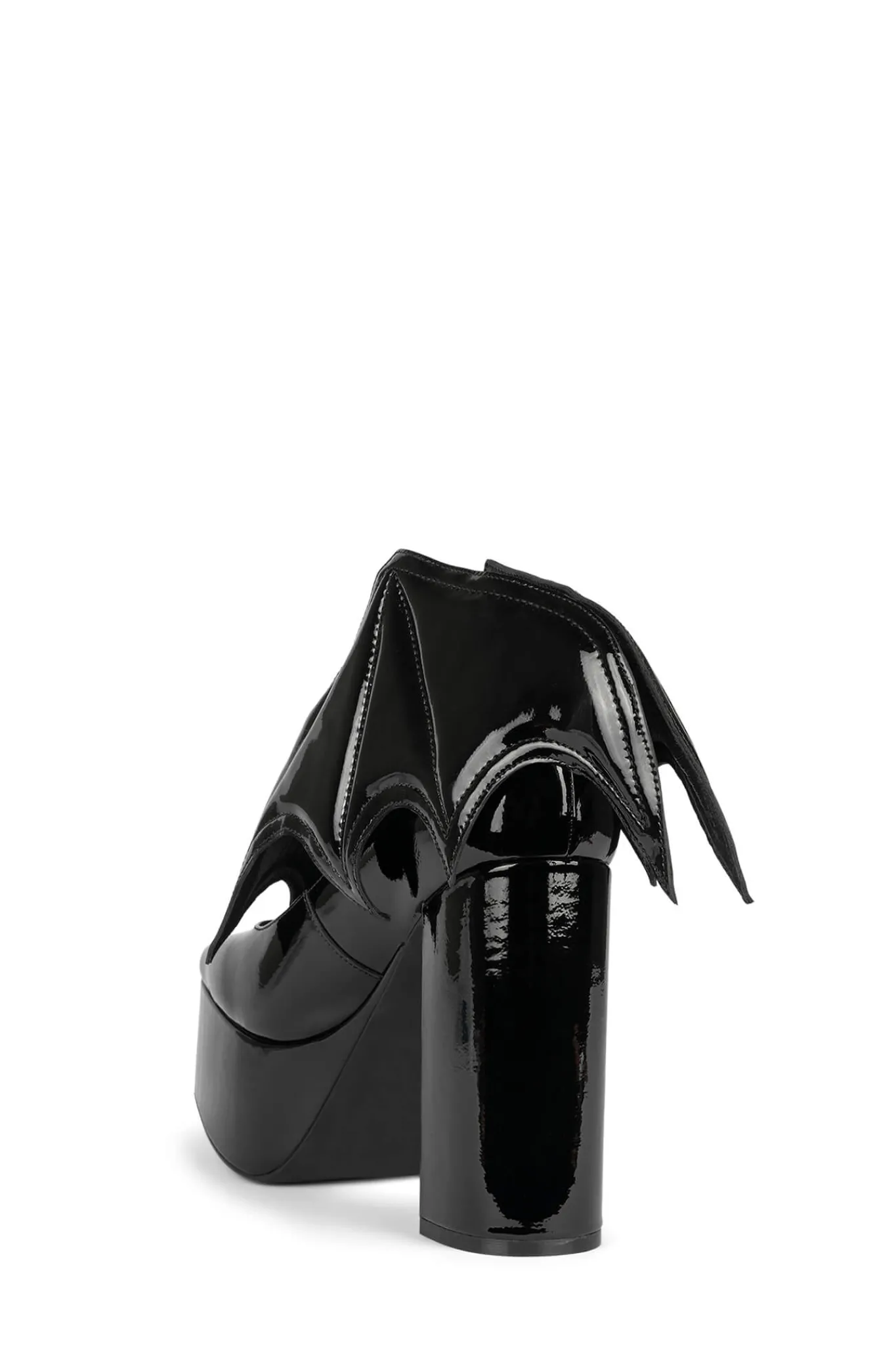 Platform pump with removable bat wingsFits half a size big. Order half size down. Measurements taken from a size 74.75″…