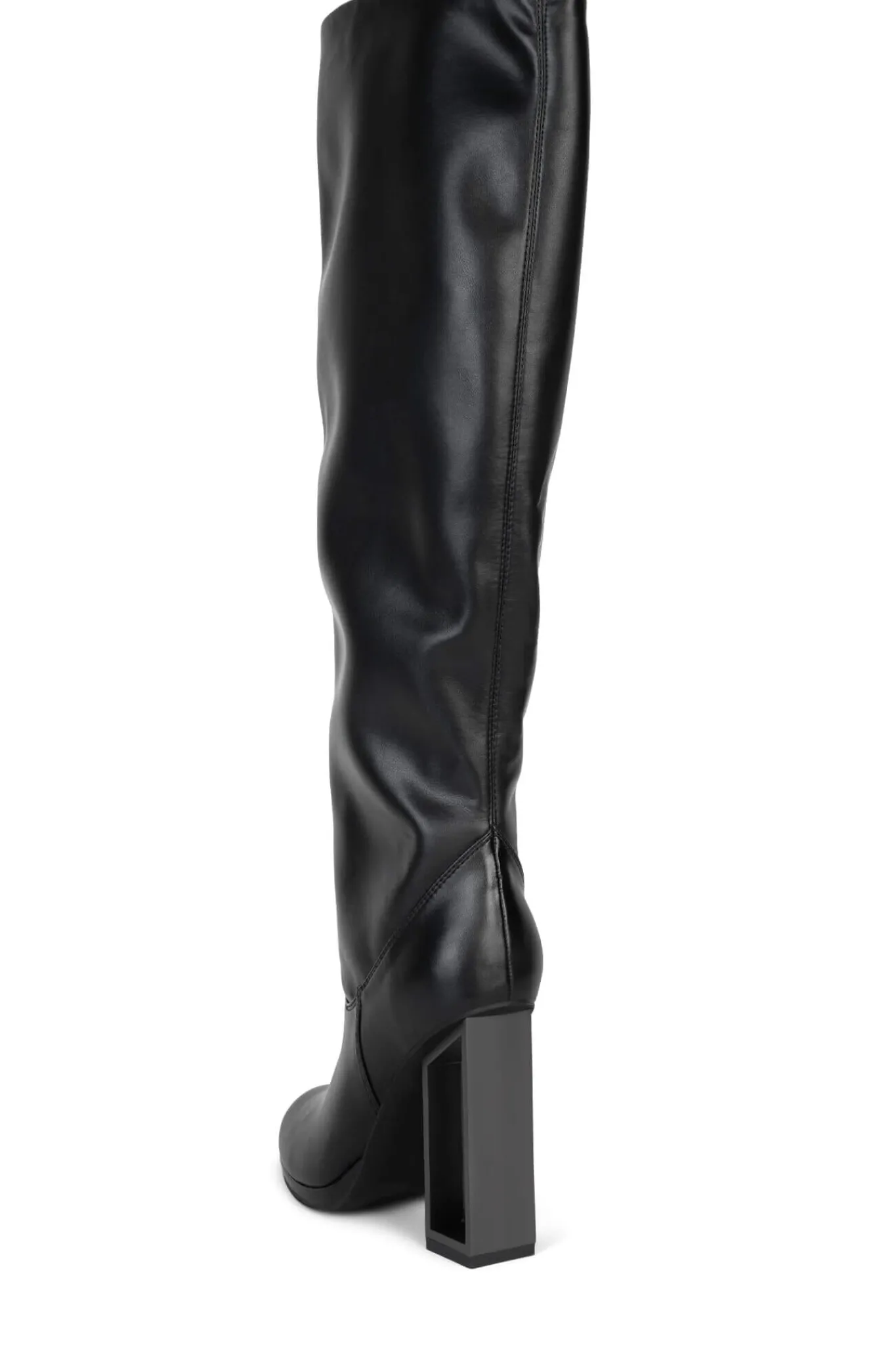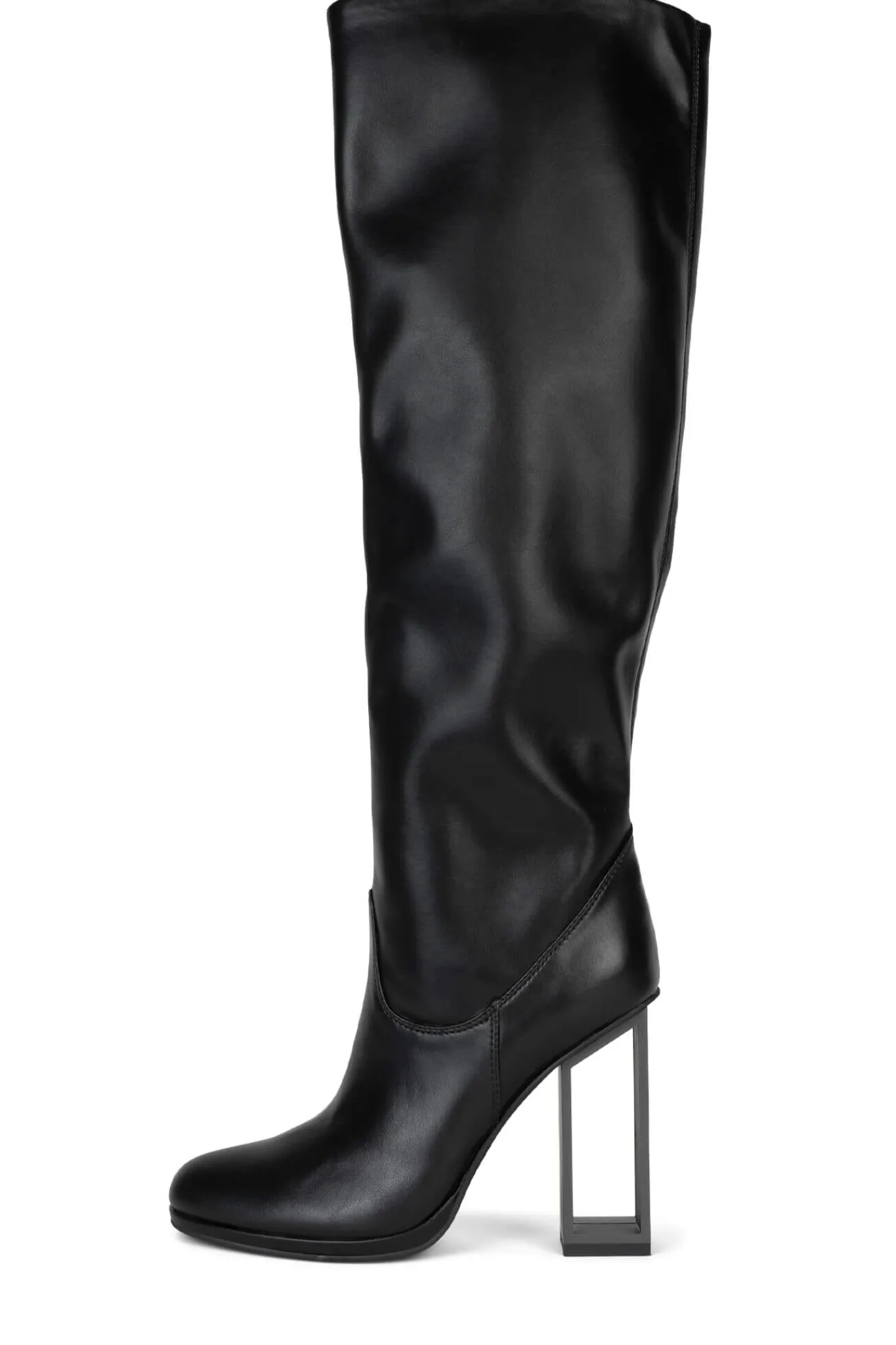 Knee-high boot with sculpted cut-out metal heel Fits true to sizeMeasurements taken from a size 7 4″ Heel, 0.25″ Platf…
