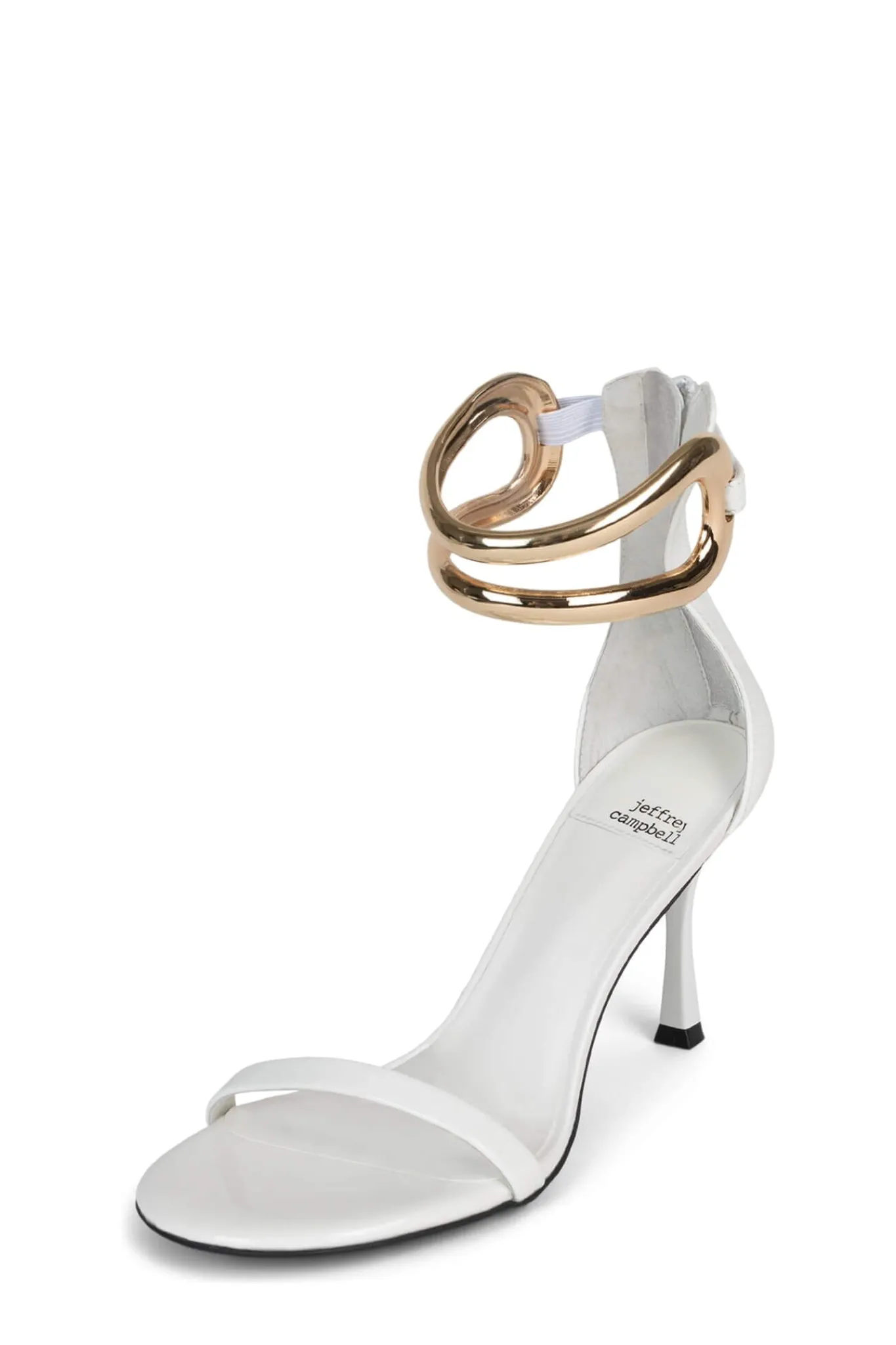 Stiletto heeled sandal with metal ankle cuff