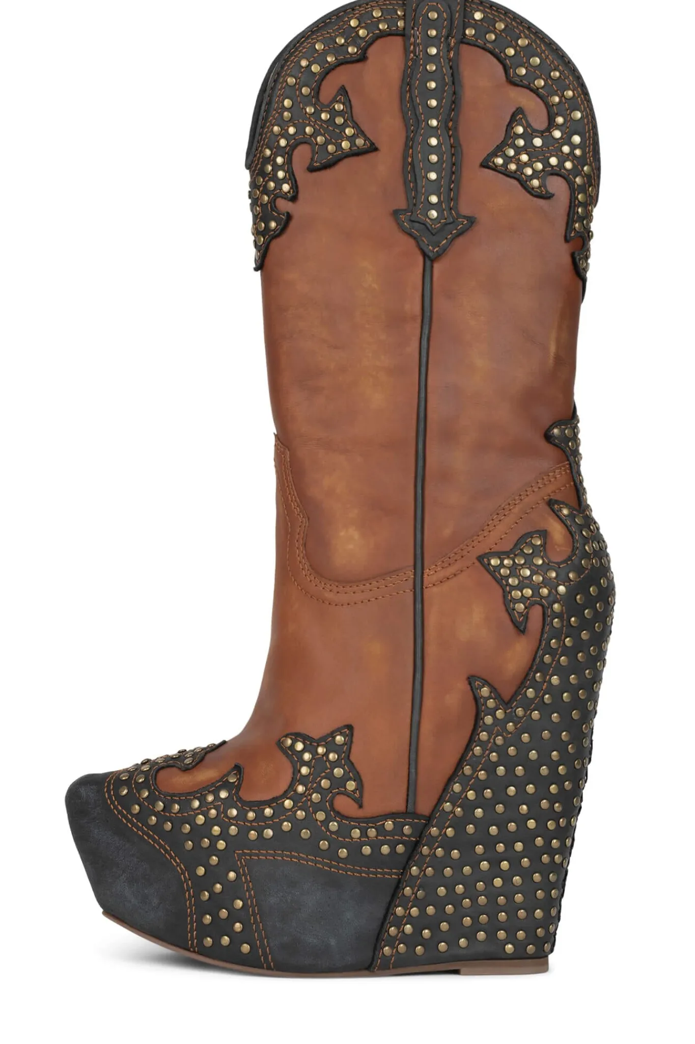 Knee-high platform western boot with stud details