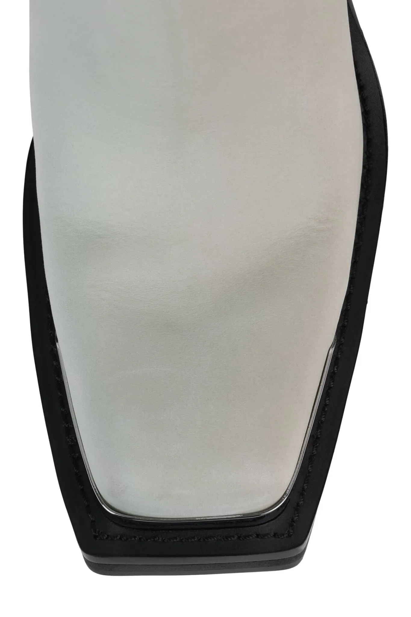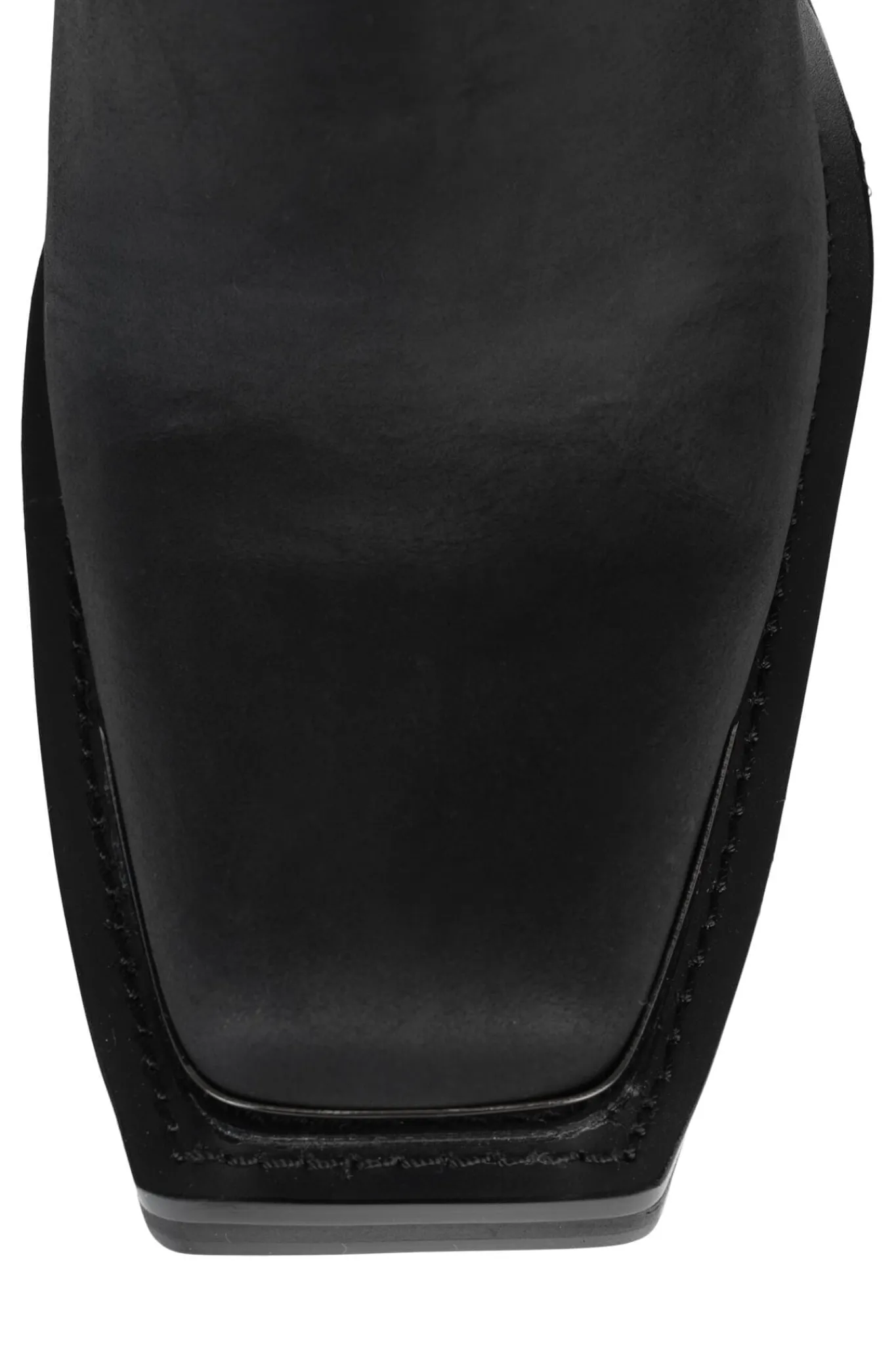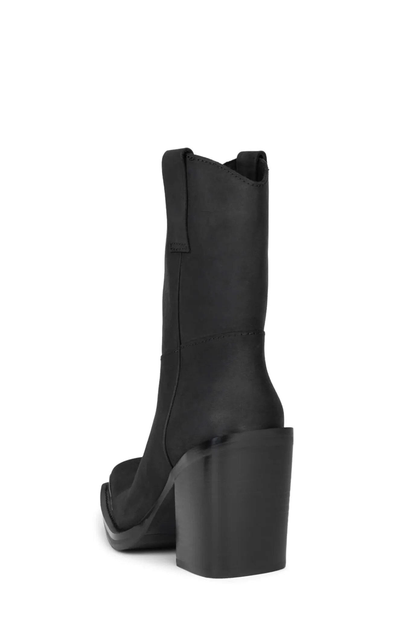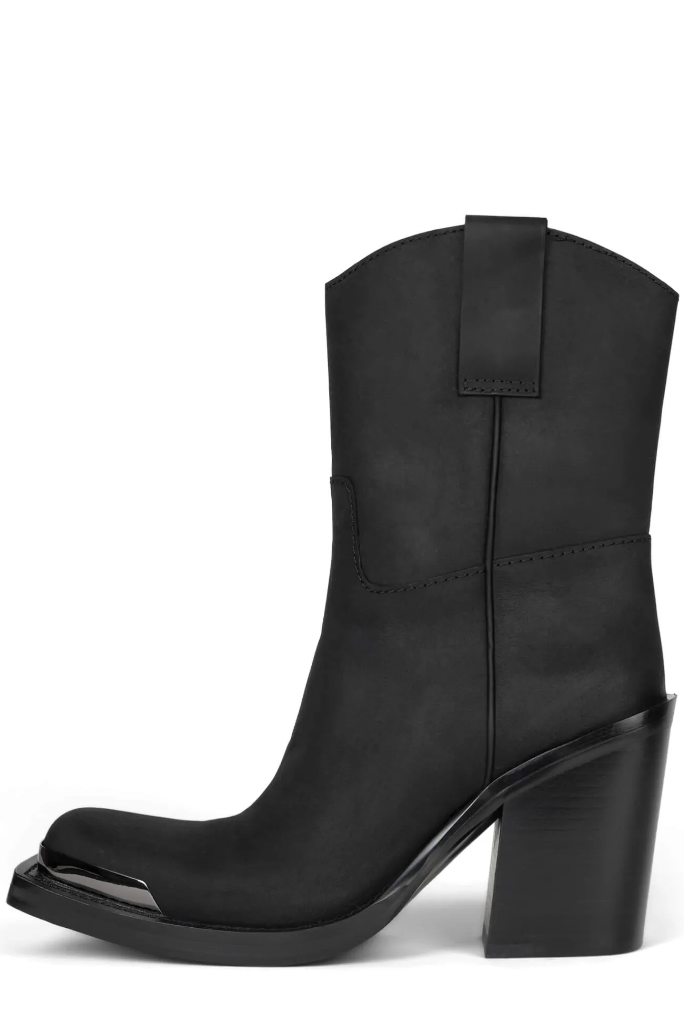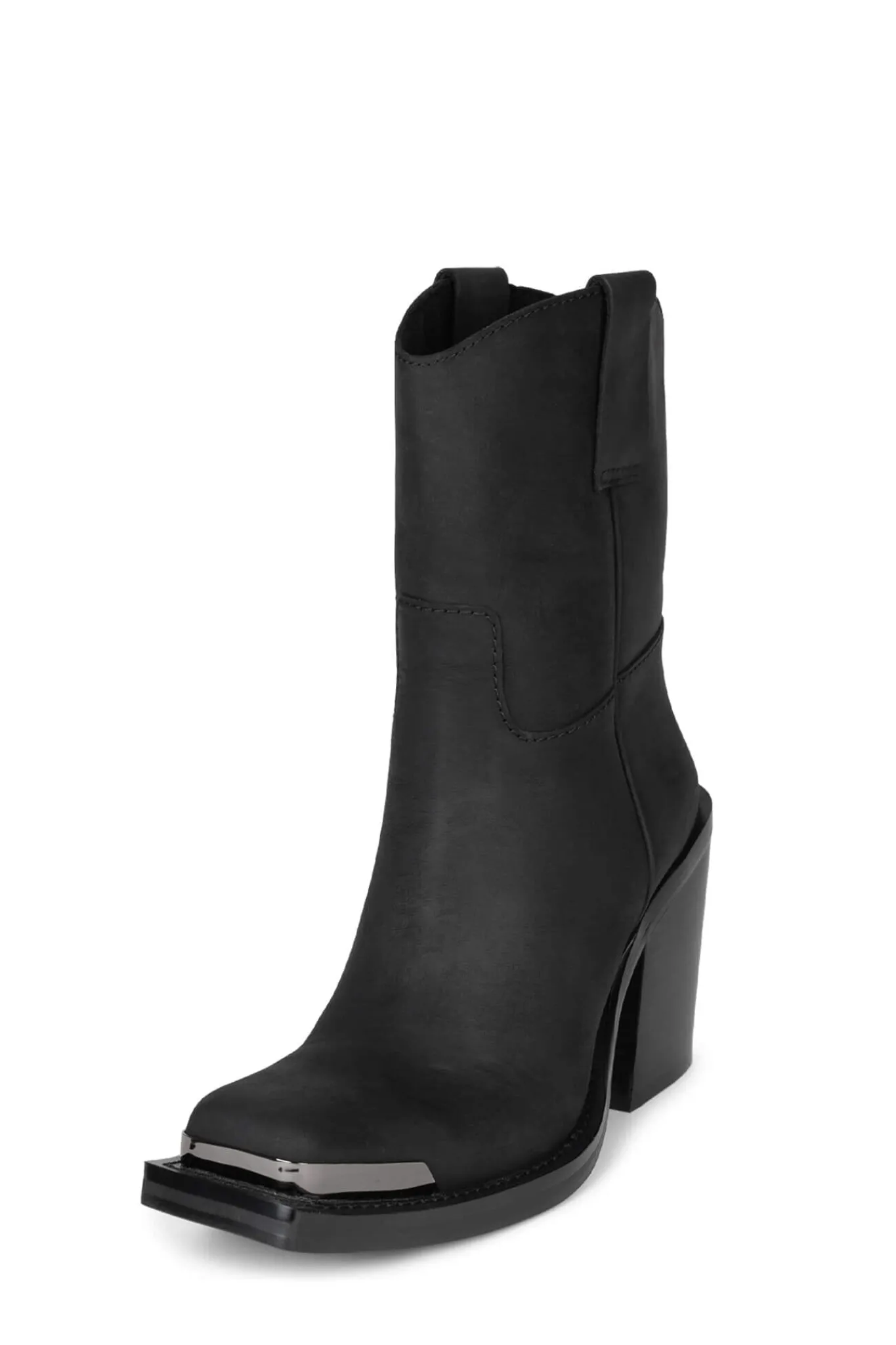 Square-toe western-inspired mid-calf boot with metal-randFits true to size Measurements taken from a size 7 3.5″ Heel,…