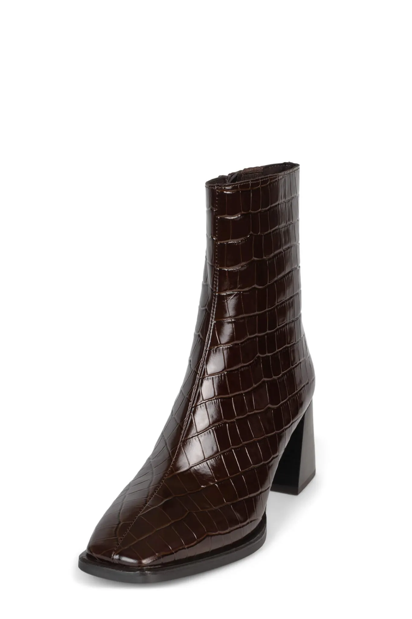 Block-heeled ankle boot Fits half a size big. Order a half size down. Measurements taken from a size 7 2.75″ Heel, 0….
