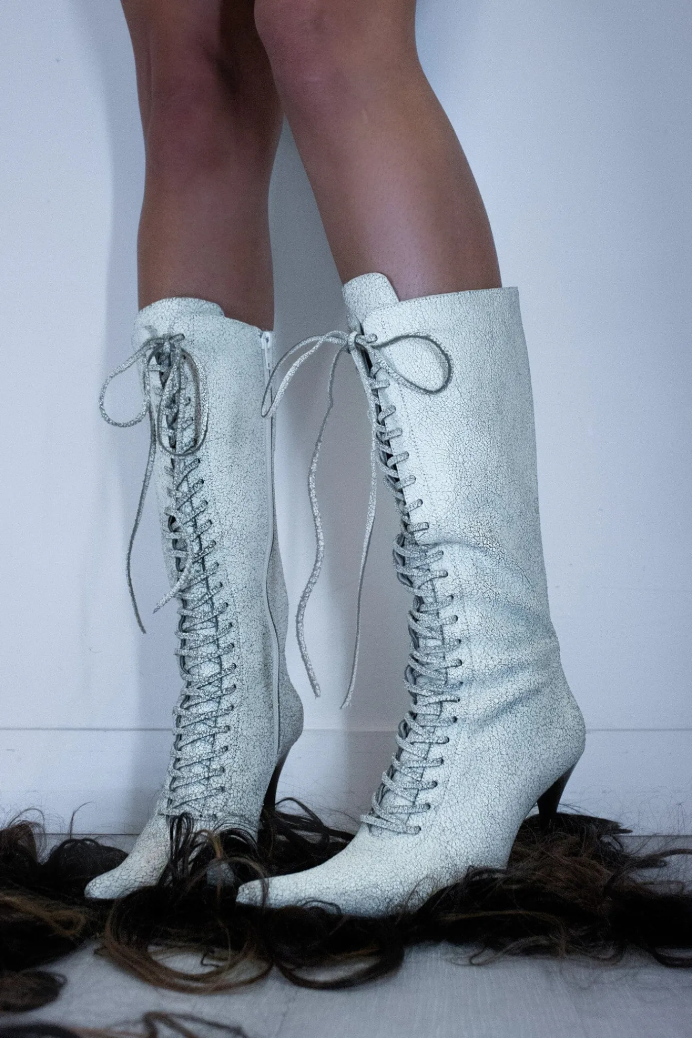 Knee-high lace-up stiletto boot Fits half a size big. Order half size down. Measurements taken from size 7 4″ Heel, 0…