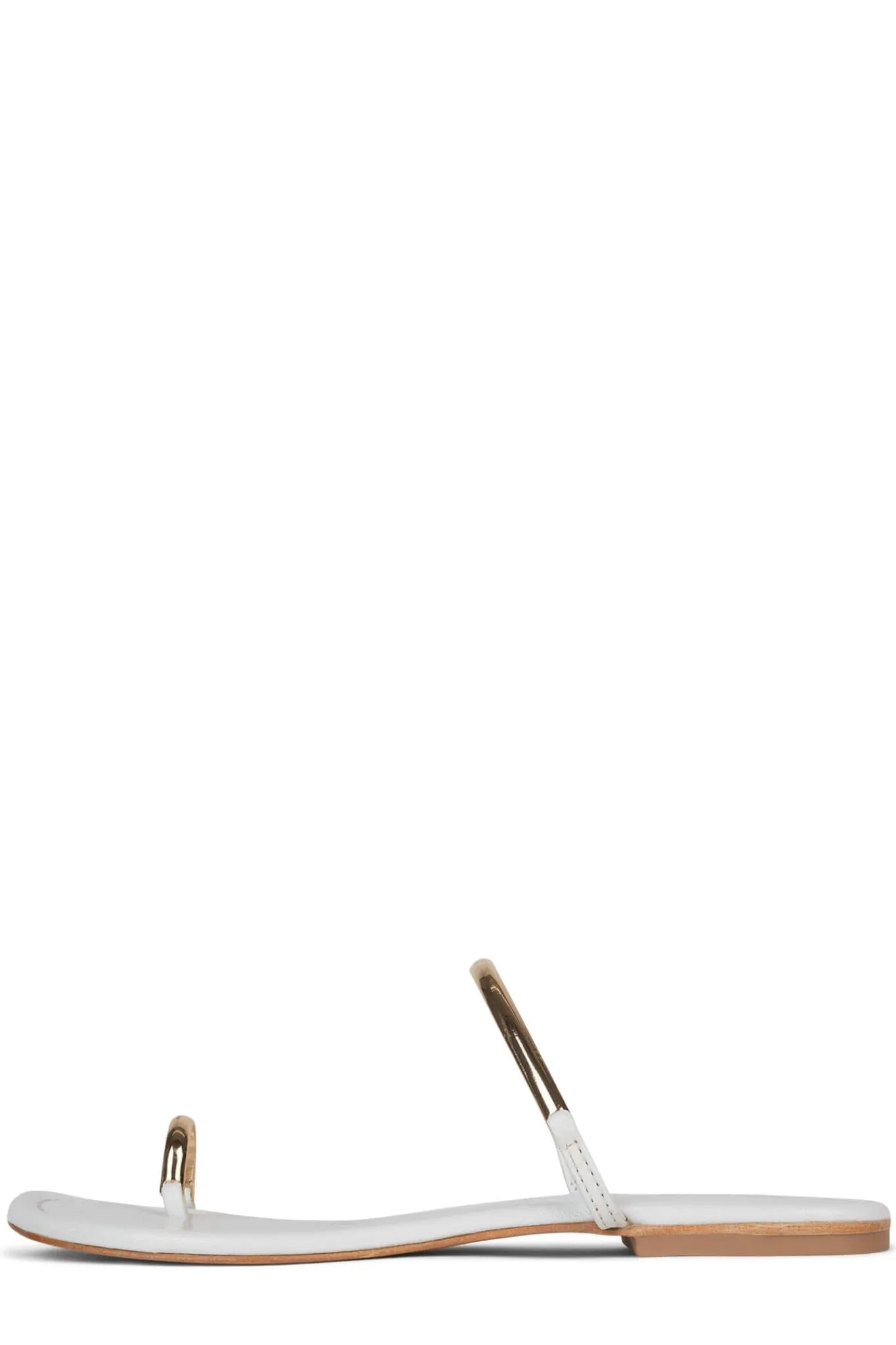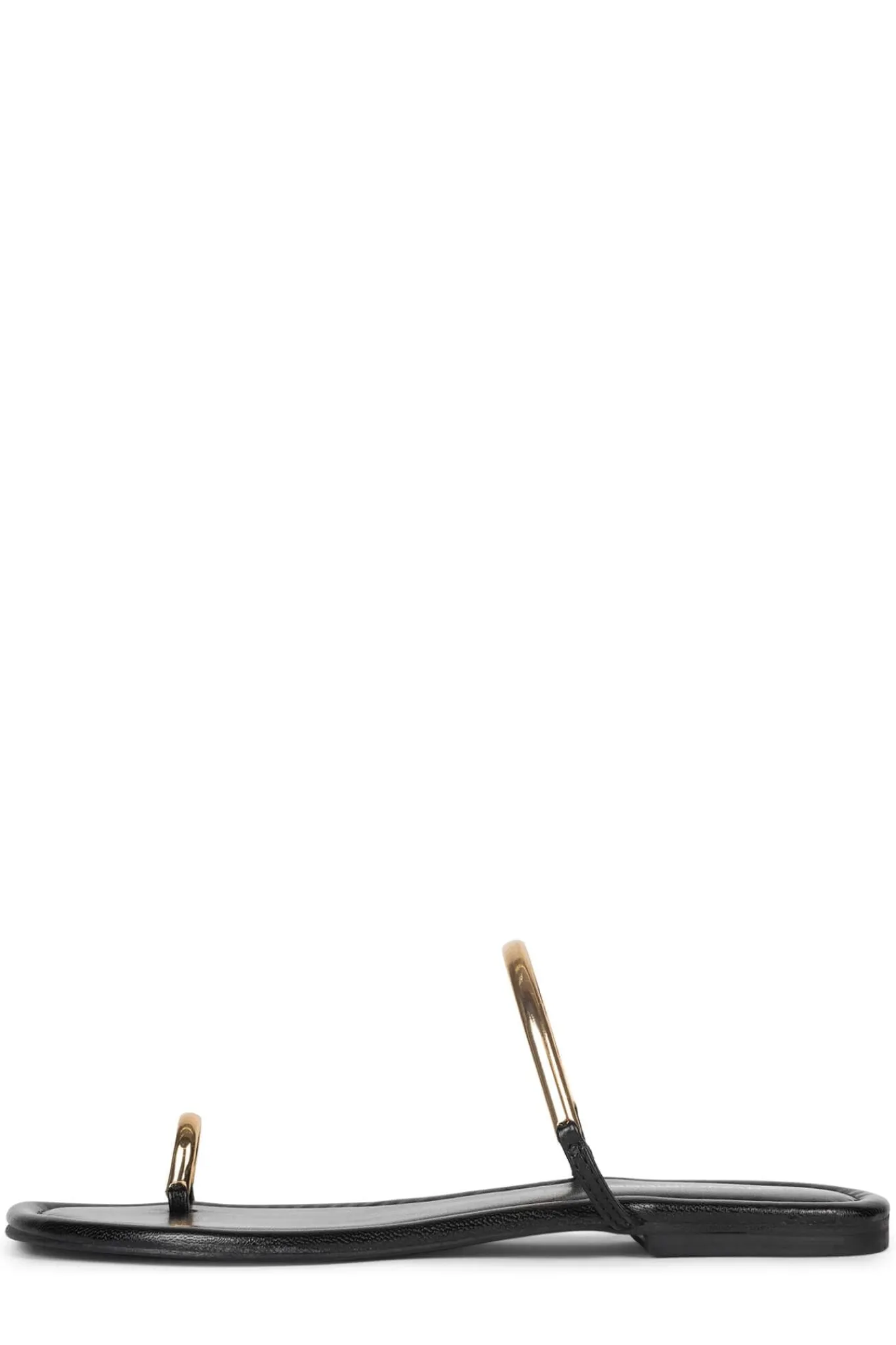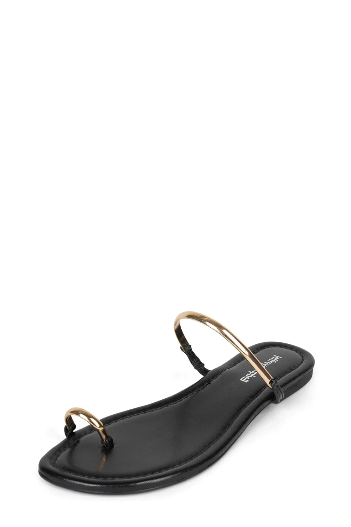 Flat sandal with metal-ring strap and toe-ring Fits true to sizeMeasurements taken from a size 7 0.5″ Heel, 0.25″ Plat…