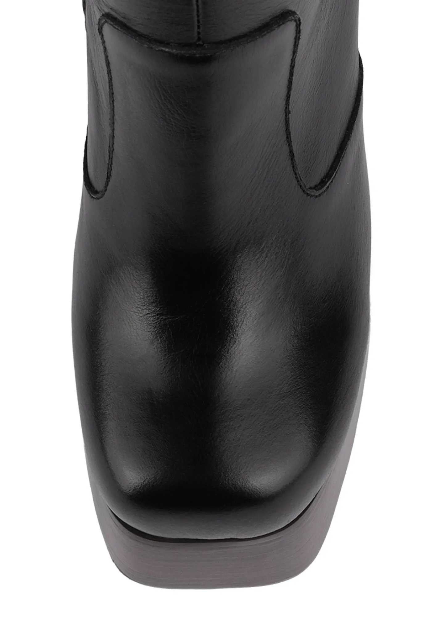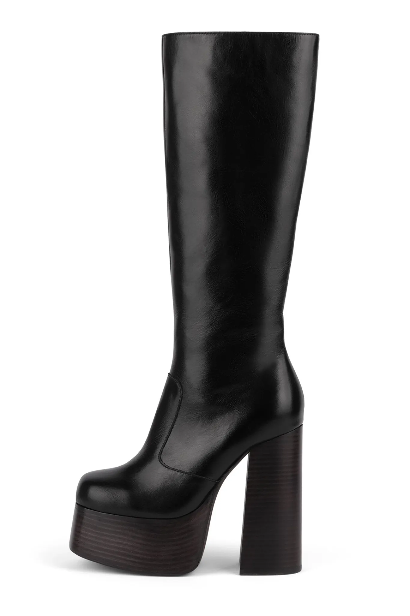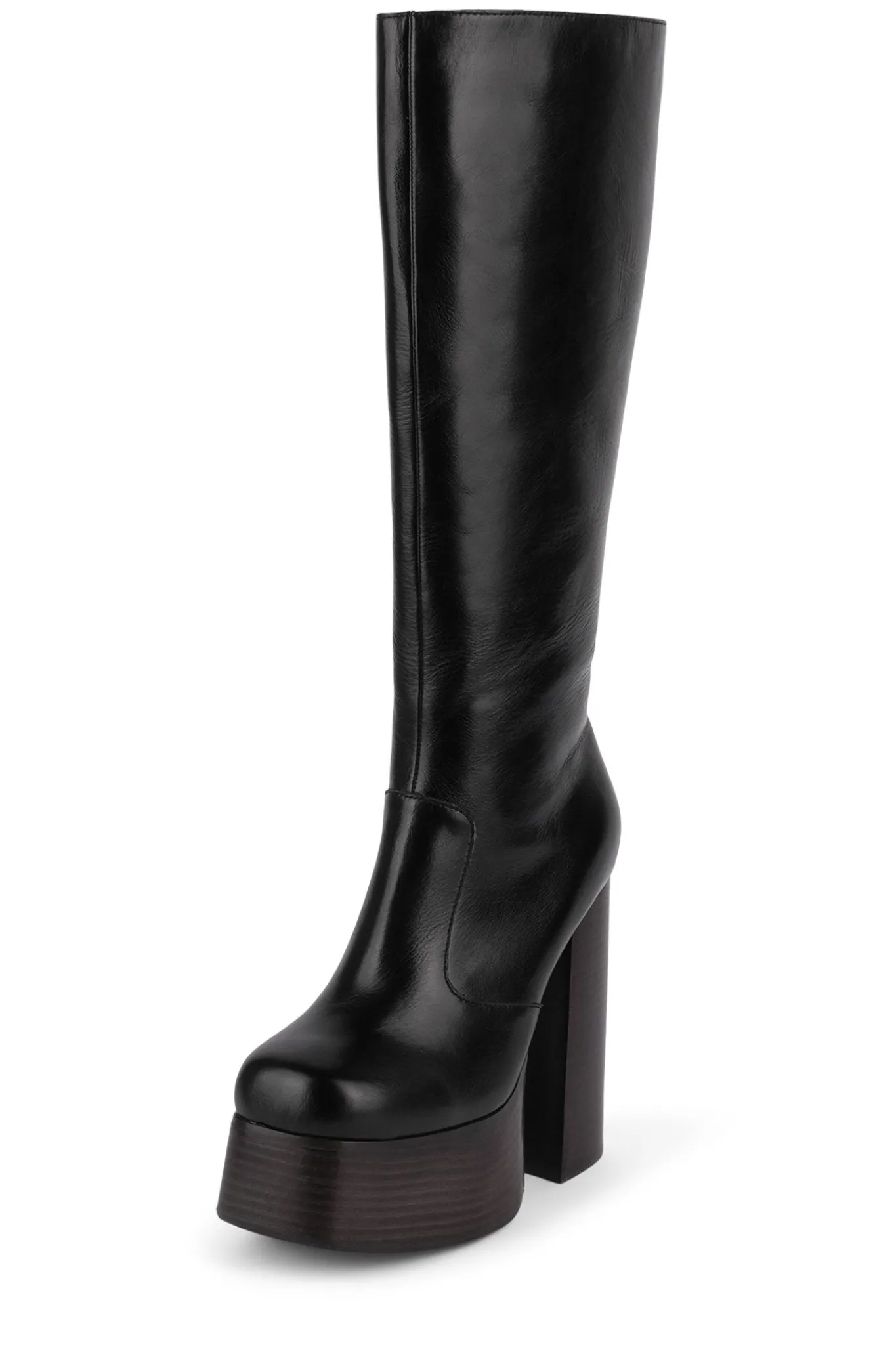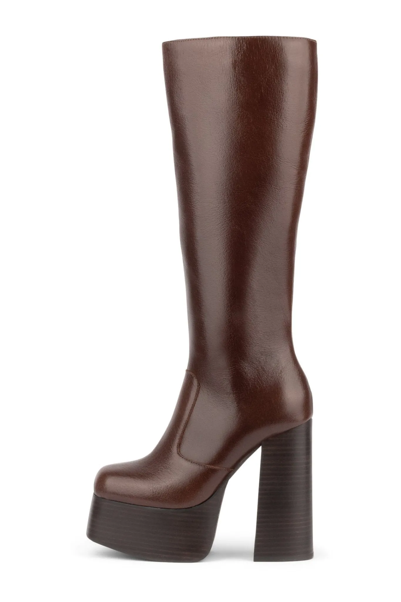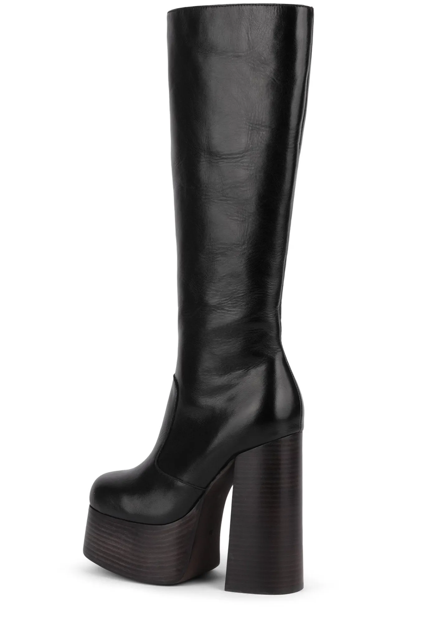 Knee-high platform chunky heeled boot.