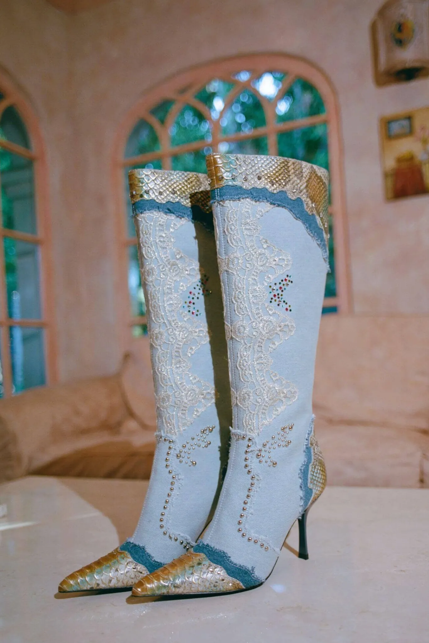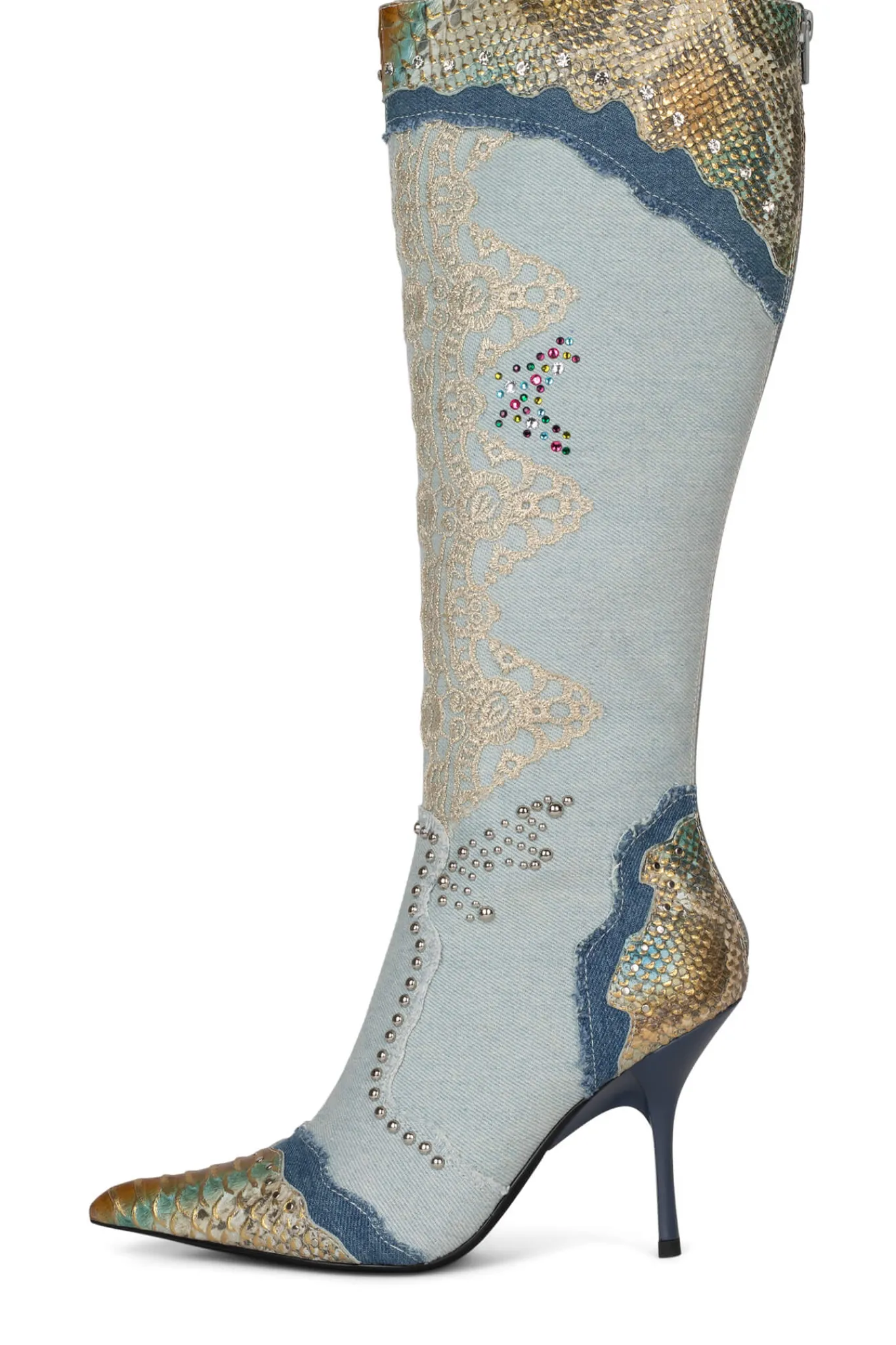 Mixed-material knee-high boot