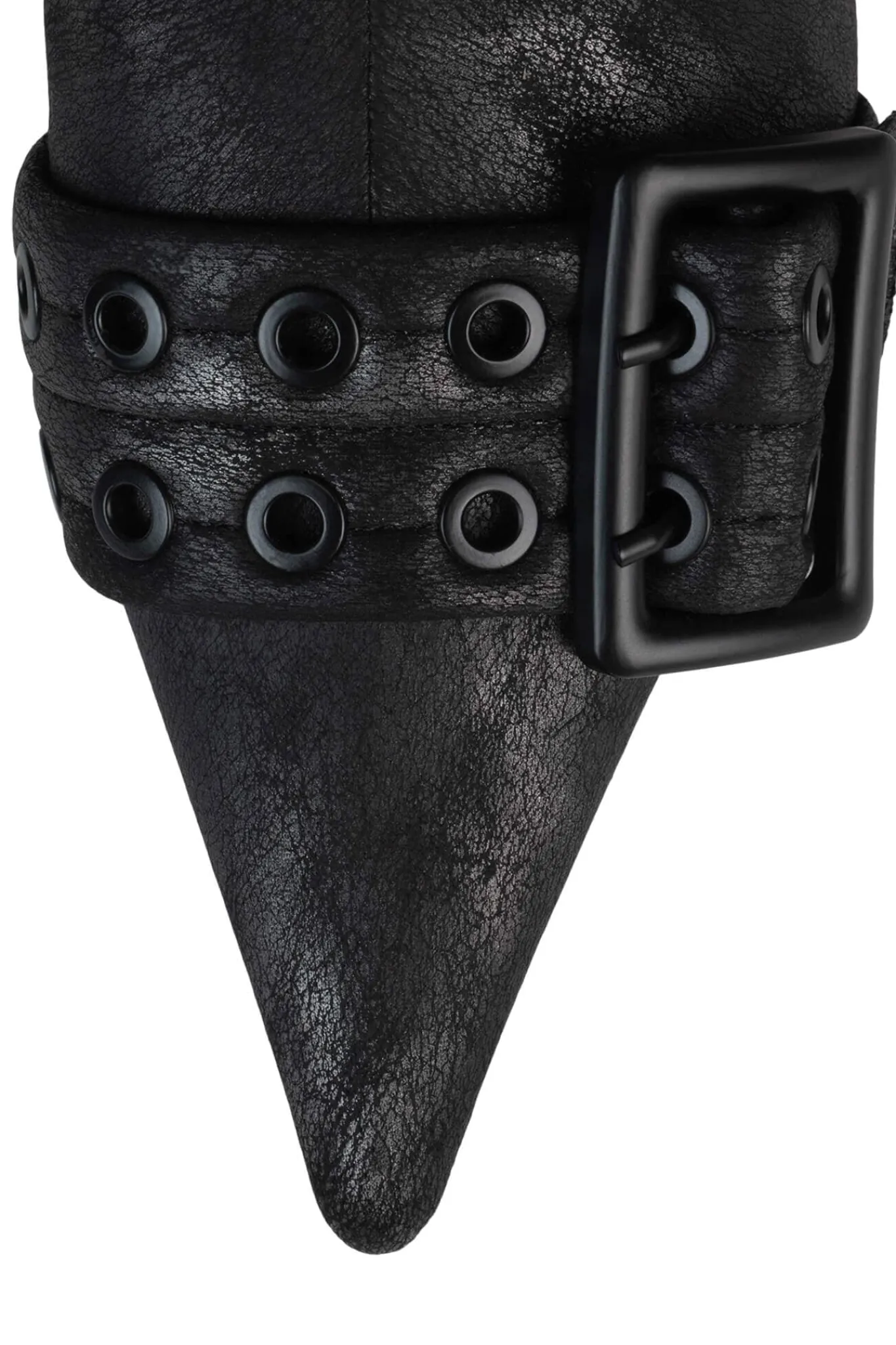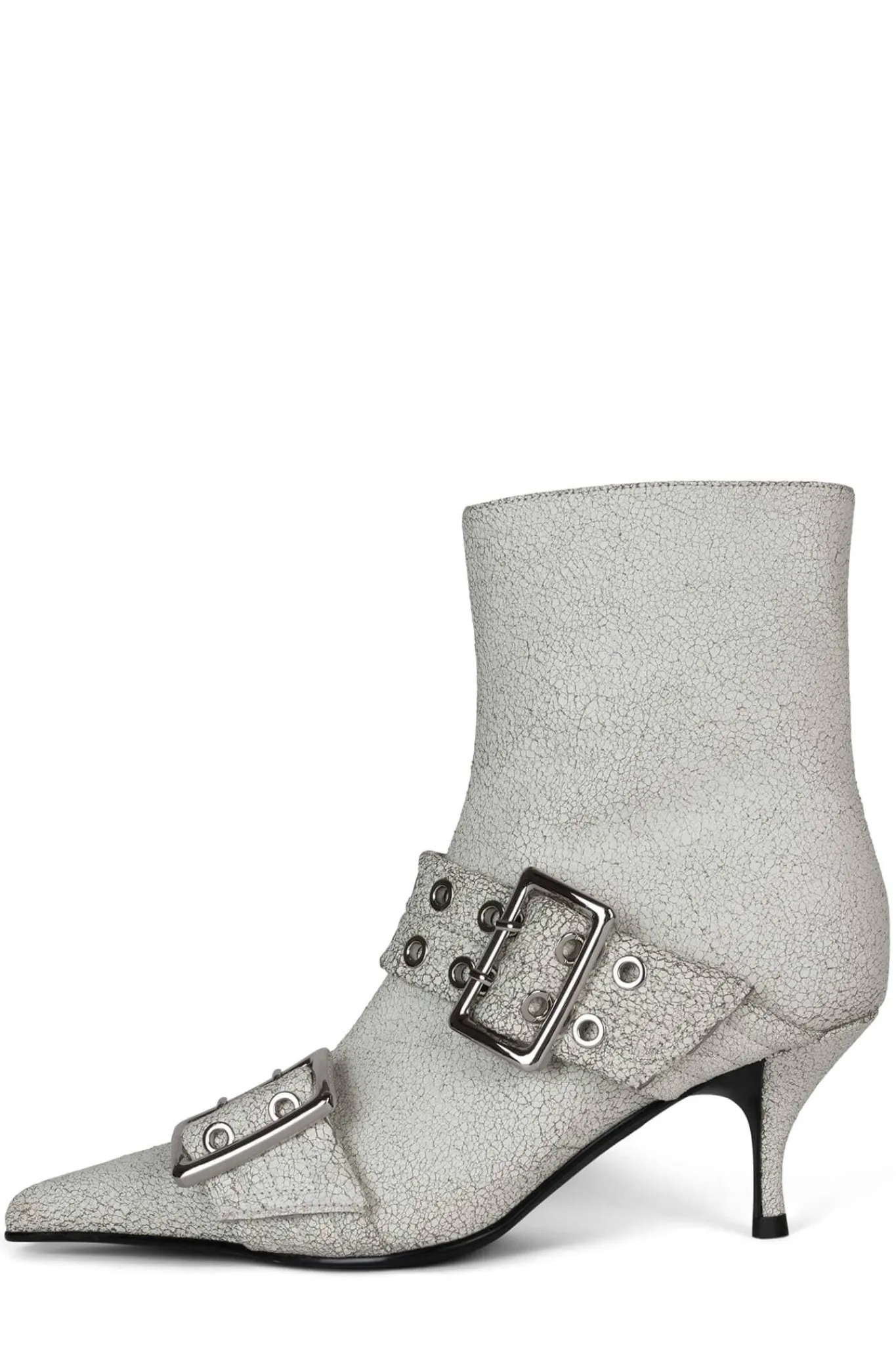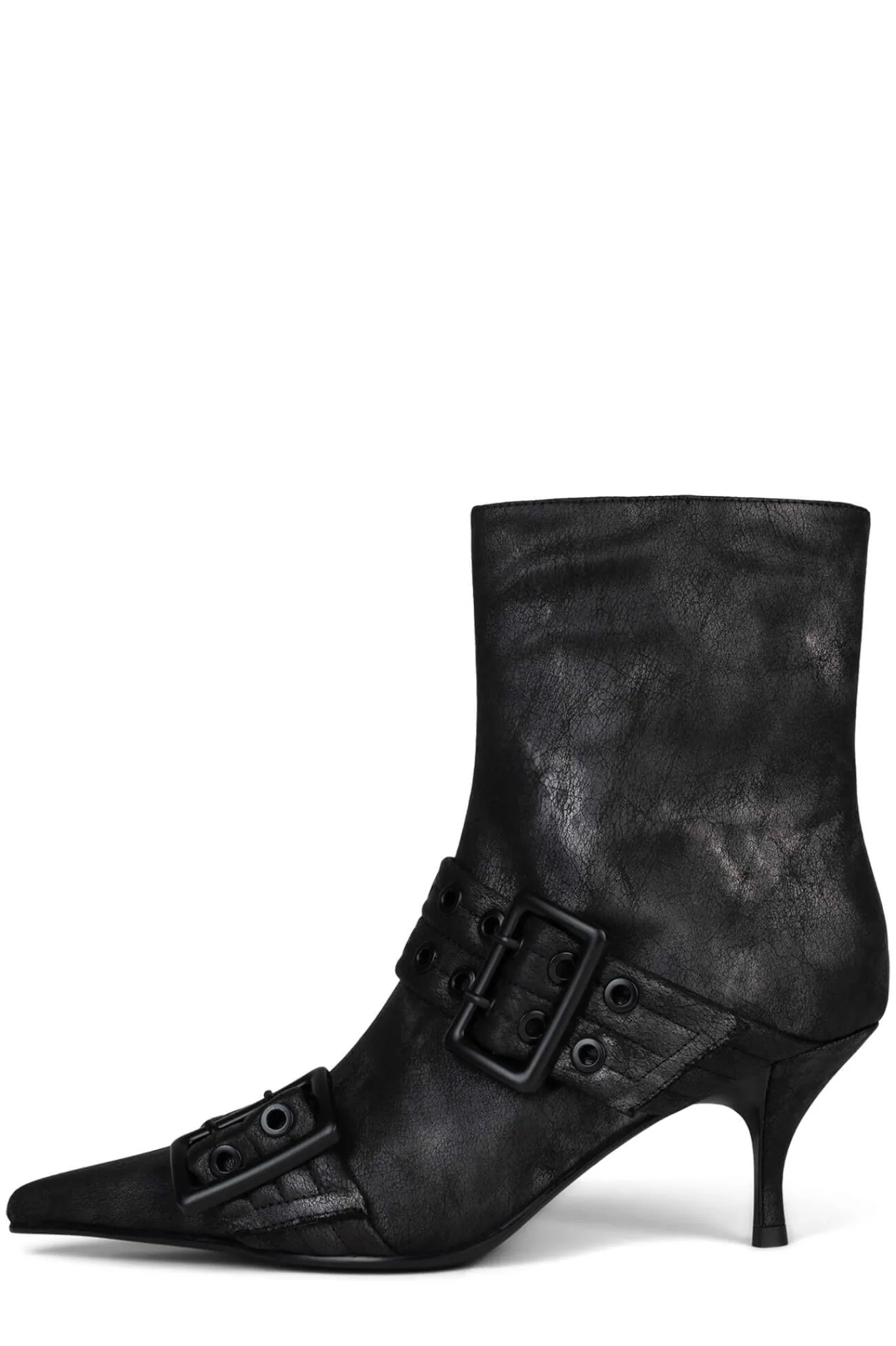 Distressed pointed-toe heeled boot with bucklesFits true to sizeMeasurements taken from size 7 2.5″ Heel, 0.25″ Platfor…