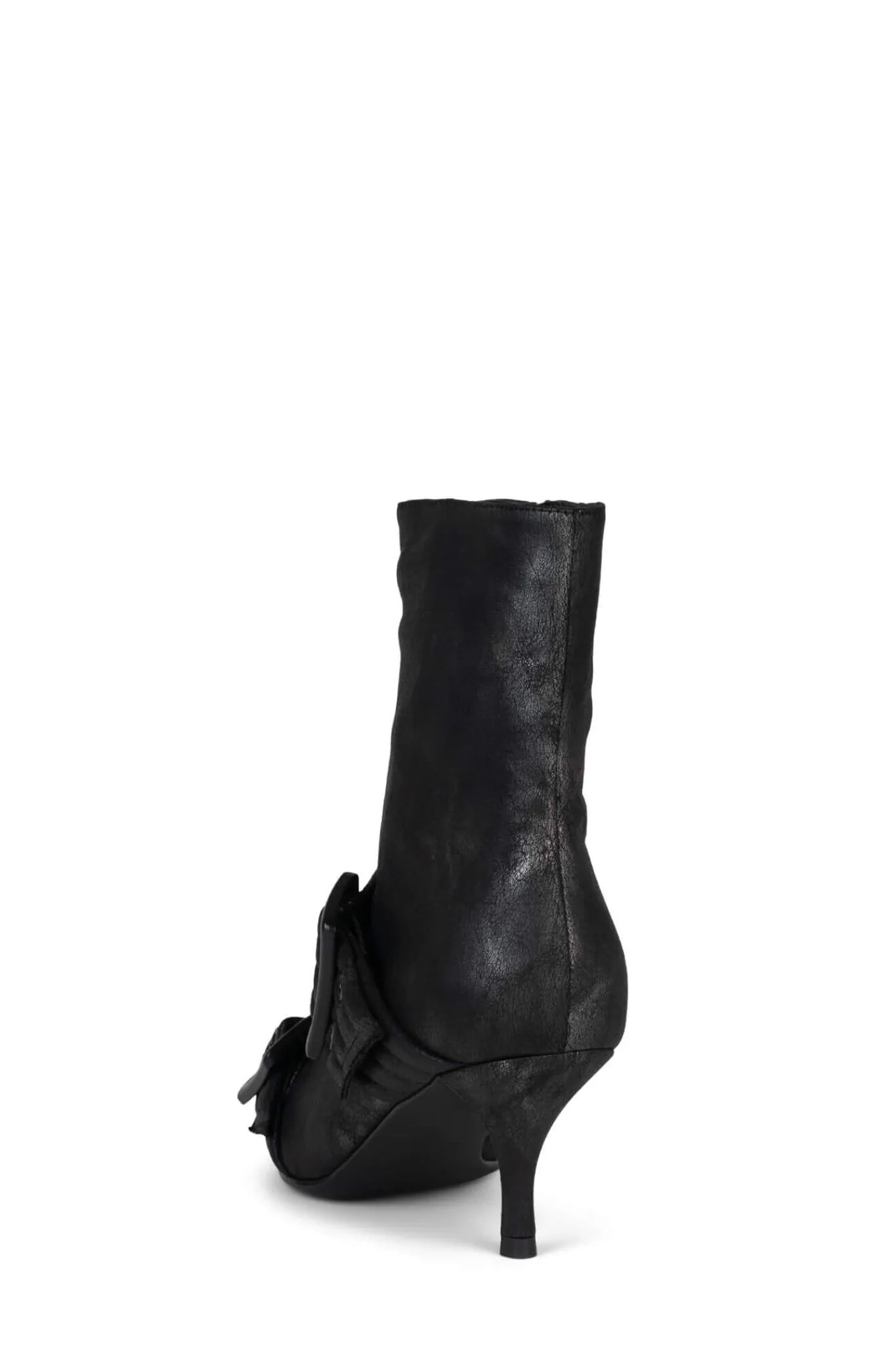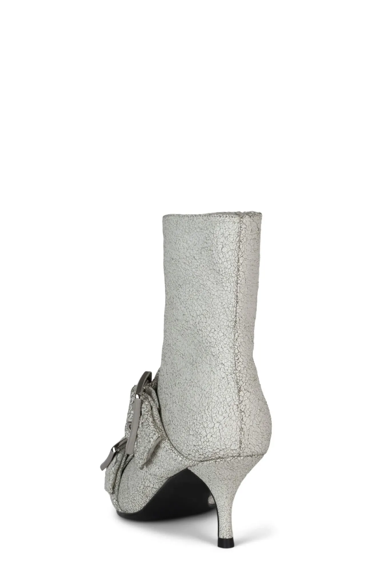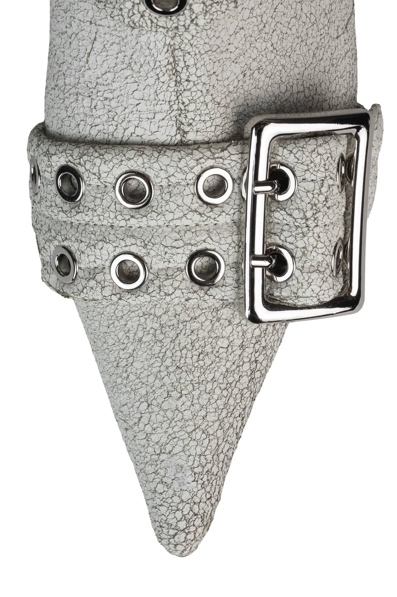 Distressed pointed-toe heeled boot with bucklesFits true to sizeMeasurements taken from size 7 2.5″ Heel, 0.25″ Platfor…
